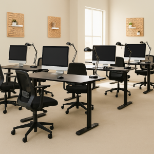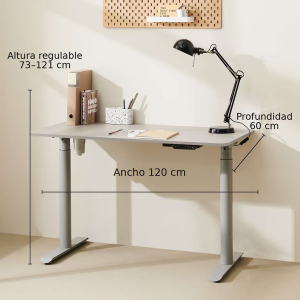 Este escritorio regulable combina diseño moderno y funcionalidad para adaptarse a cualquier espacio de trabajo. Su estructura con patas reforzadas de hierro plegado de 2 mm de espesor garantiza una excelente estabilidad, mientras que el sistema de altura ajustable permite alternar fácilmente entre trabajar sentado o de pie, mejorando la ergonomía y el confort durante toda la jornada.